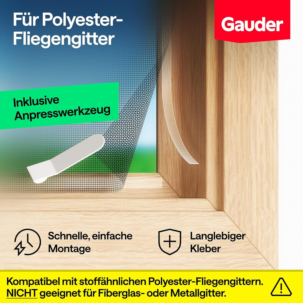 GAUDER Klettband für Fliegengitter aus Polyester für Tür und Fenster — für eine insektenfreie Sommerzeit!